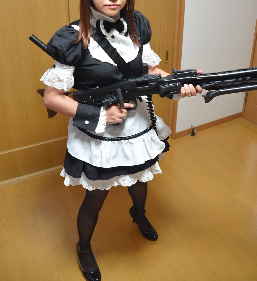 WWU中、ドイツ軍が使っていた汎用機関銃。プレス加工を用いた高い生産性、劣悪な環境でも稼動する堅牢性、毎分1,200発以上という高い発射速度と、それを支える銃身交換の容易さ。 もうね、優秀この上ないってほど優秀な銃です。 一部改良を加えられながら、ドイツはじめ幾つもの国で、いまだ現役として使われていることがそれを証明しています。 |